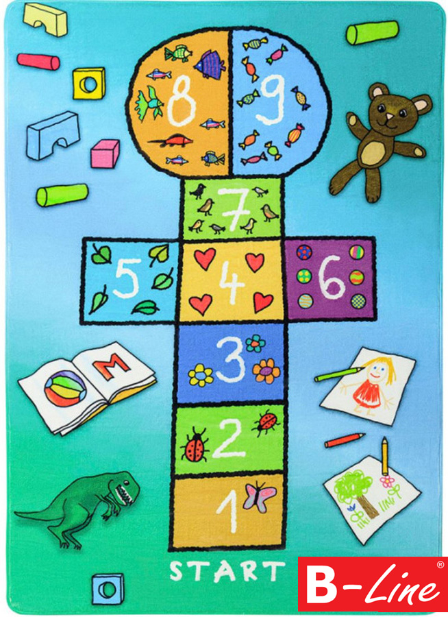 Detský kusový koberec Skákací panák - modrý